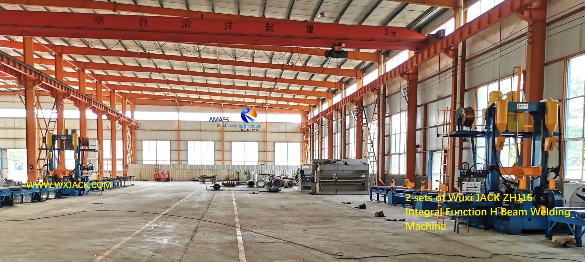 Пролистываемые слева фотографии: Рабочий момент машины Wuxi JACK для сборки, сварки и правки двутавровой балки 3 в 1 и ее готовых заготовок.